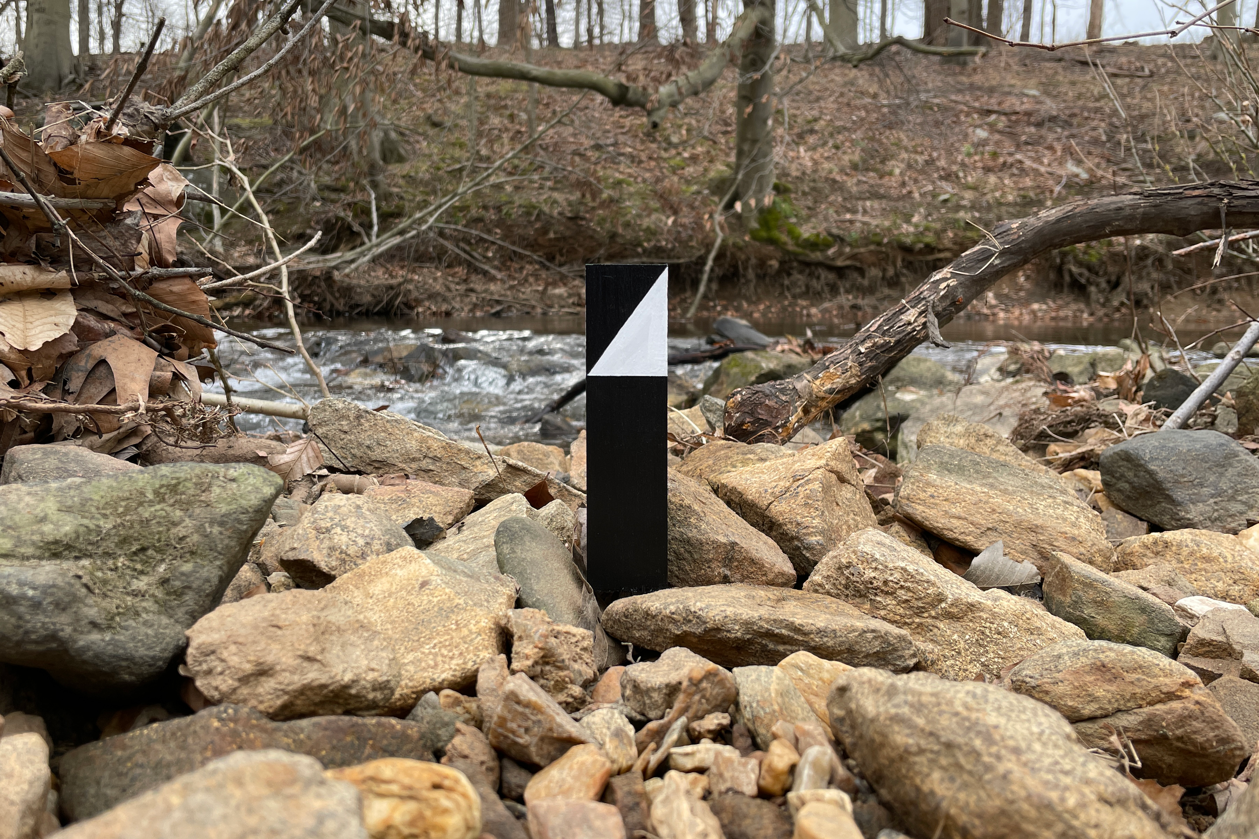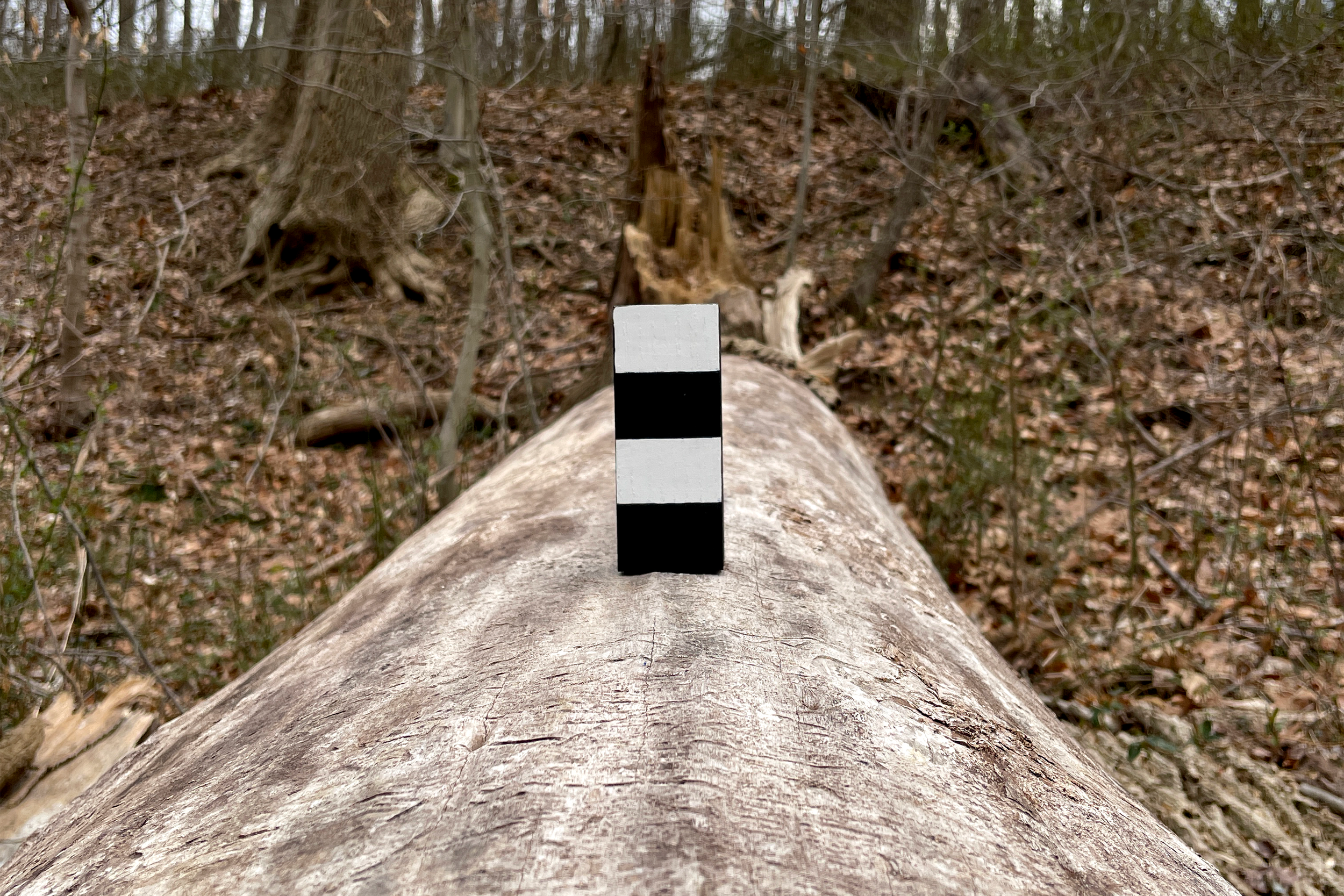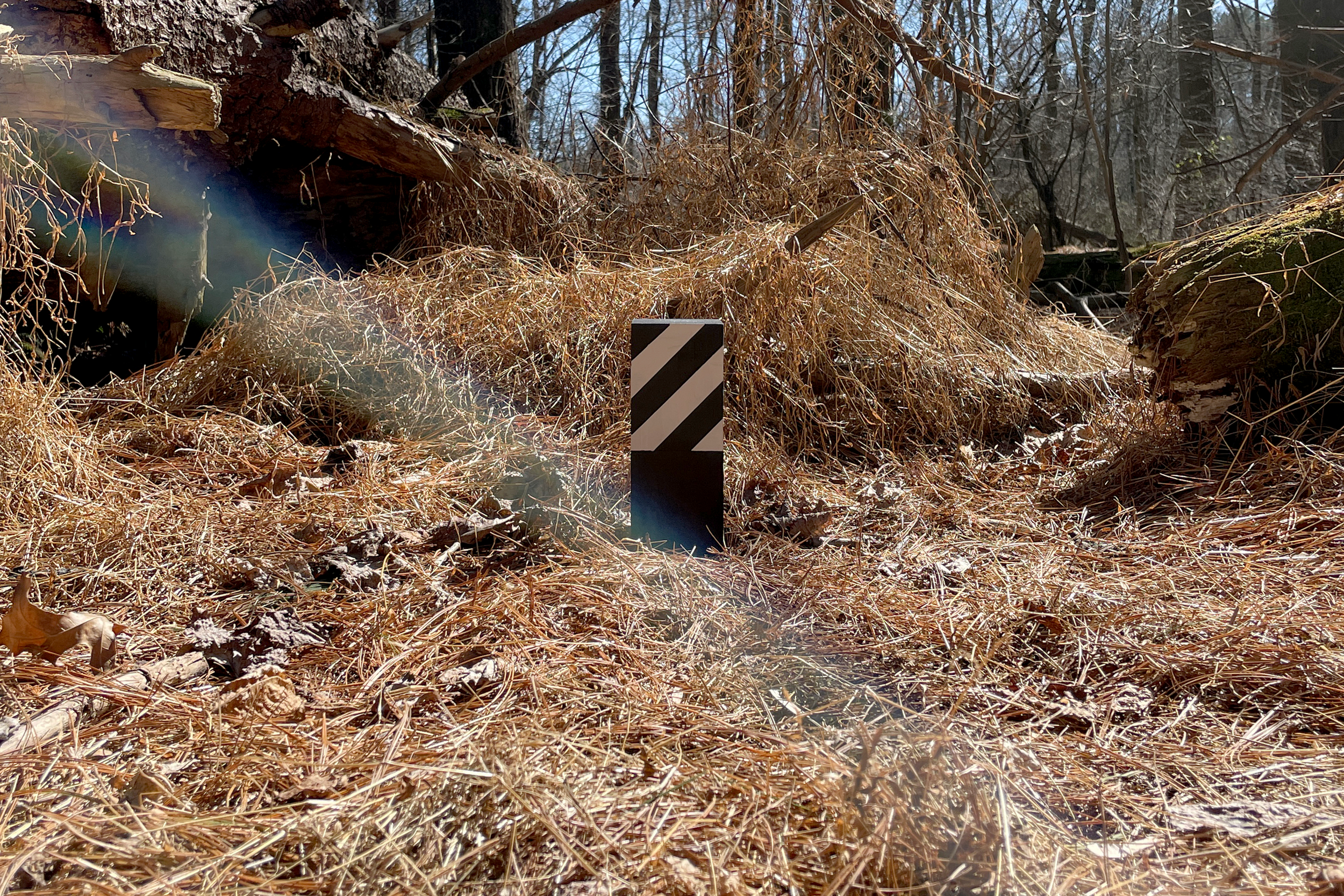 A study of signs and symbols as language. Taking note of utilitarian symbols posted along highways and roads, they are especially prominent when driving through nature. Often overlooked, they are communicating a message to those who know their meaning, markers of some kind. Hand painted wood, left in the environment for enjoyment or taking. A new interpretation of communication.