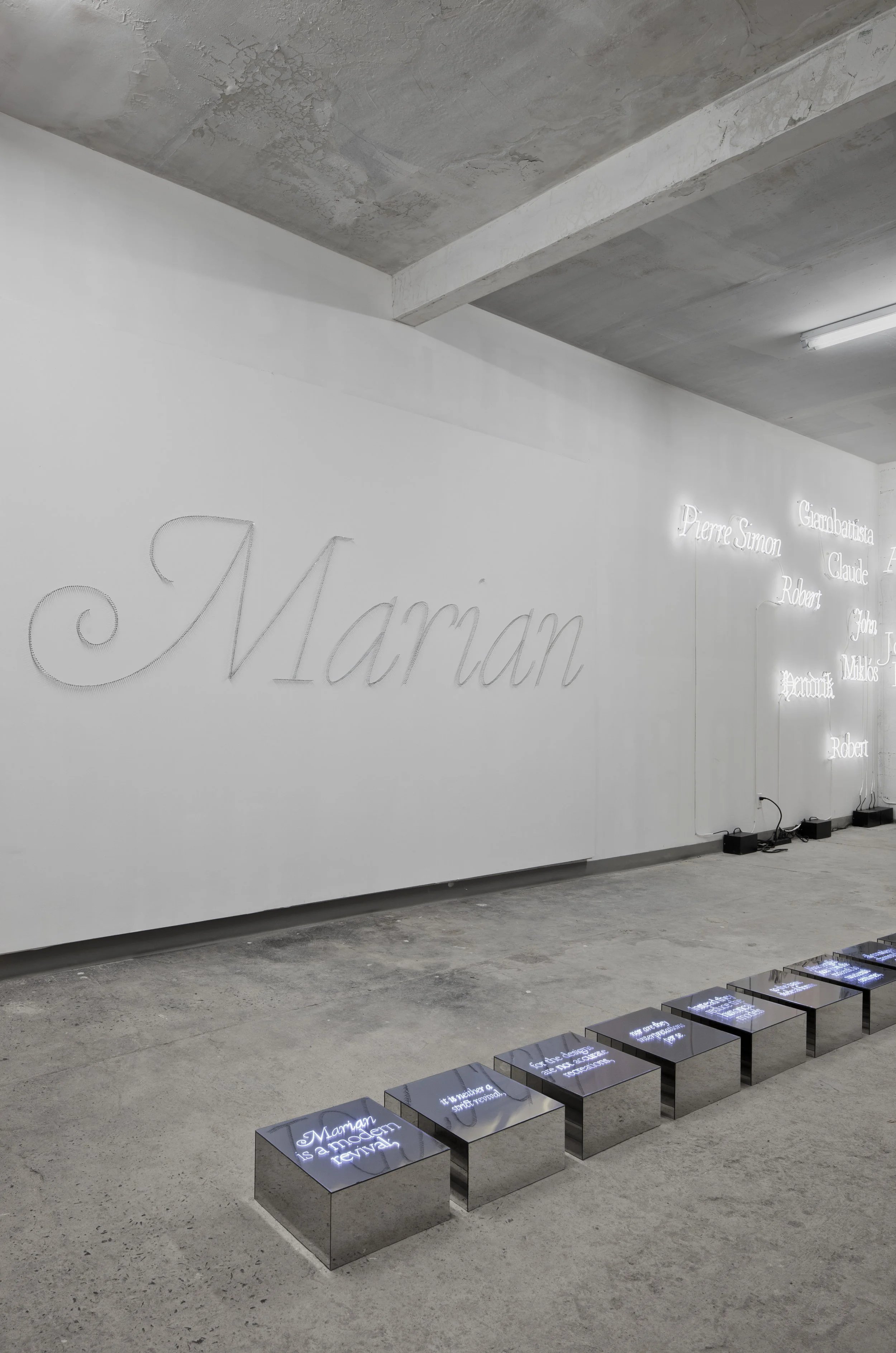 Exhibition in collaboration with Commercial Type celebrating Marian, a typeface by Paul Barnes that reduces classic models of serif type design to their basic skeletal forms. The exhibit explored the possibilities offered by the single stroke letterforms of the typeface in a variety of media.